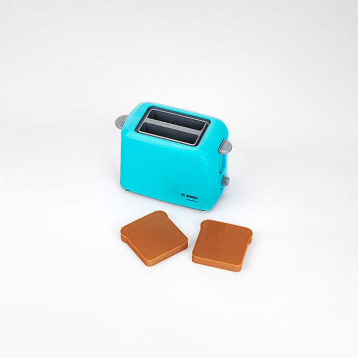 Figyelem! Ez gyerekek számára készült játék, kicsit megtévesztő, hiszen pont ugyanolyan, mint amilyet a felnőttek használnak! Bosch kenyérpirító. Az elegáns játék kenyérpirító az eredeti Bosch dizájn mása. Mechanikus pirítós funkció, próbakapcsoló és a két játék pirítósszelet. A kenyérpirítót játéknak tervezték, és sok szórakozást nyújt a gyerekeknek. Méretek: 15 cm x 12 cm x 10,5 cm Három éves és idősebb gyermekek számára alkalmas