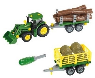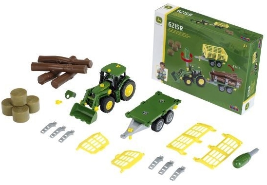 Klein John Deere traktor utánfutóval fával és szénabálával (3906 KN)