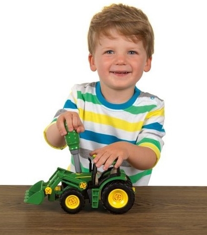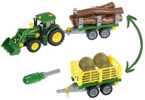 Klein John Deere traktor utánfutóval fával és szénabálával