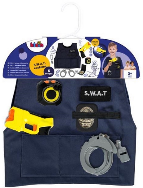 Ez a termék a Theo Klein SWAT Police Action Set (3 részes), amely egy izgalmas, szerepjátékra épülő akciócsomag, ahol a gyerekek egy különleges egység (SWAT) tagjaként élhetnek át kalandos küldetéseket, így fejlesztve a fantáziát, a szerepjáték készséget és a kézügyességet. A szett tartalmaz SWAT azonosítót, valamint akciós kiegészítőket (pl. vízipisztoly jellegű játékfegyver és küldetéshez kapcsolódó eszközök), így valósághű, mégis teljesen biztonságos játékélményt nyújt. Méret: kb. 12 x 2 x 20 cm-es kompakt csomagolás, amely könnyen hordozható és praktikus tárolást biztosít. Anyag: strapabíró, gyermekbarát műanyag elemek, amelyek hosszú távú használatra készültek. Korosztály: 3 éves kortól ajánlott, kisgyermekek számára ideális szerepjáték készlet. A kis méret ellenére rendkívül élménydús játék, amely bevezeti a gyerekeket az akciódús rendvédelmi szerepjátékok világába.