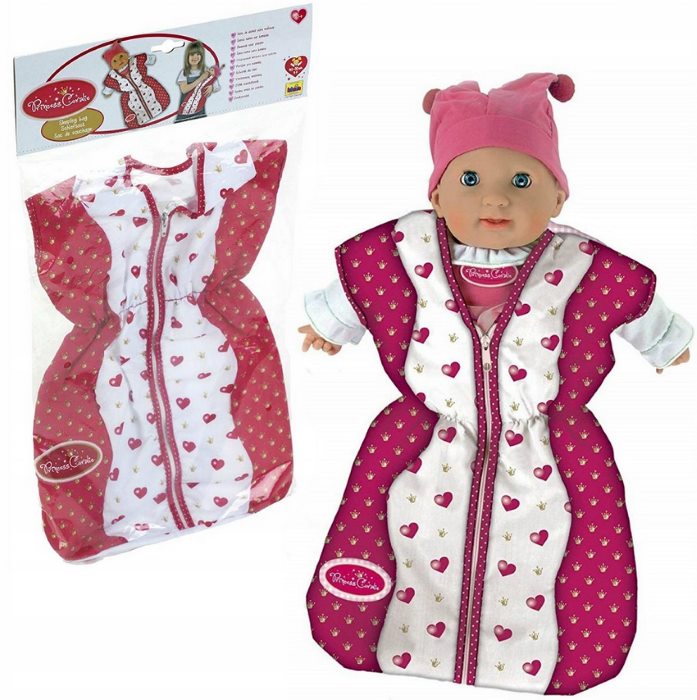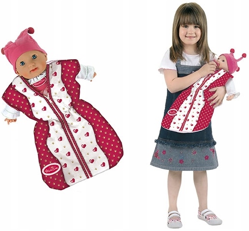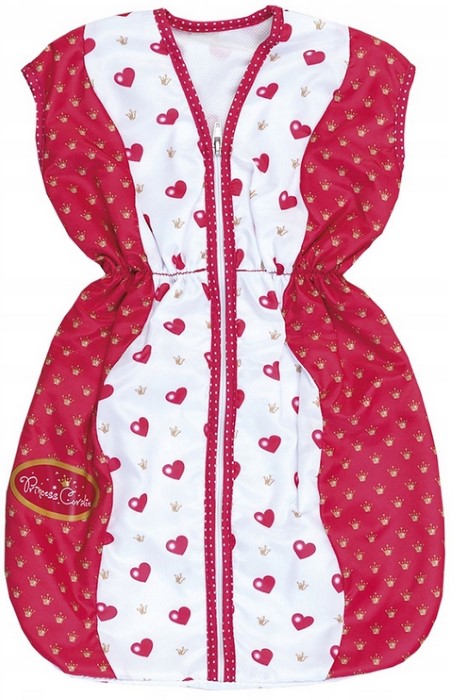 A Klein Princess KN1601 hálózsák egy játékbabákhoz készült, cipzáras babahálózsák, amely 40-50 cm-es babákhoz illik és 3 éves kortól ajánlott. Puha, 100% poliészter anyagból készült, rózsaszín-fehér mintázattal díszített, elöl futó cipzárral és rugalmas derékrésszel, így könnyen fel- és levehető a babáról, és kényelmes, élethű alvási élményt nyújt a szerepjátékok során.
