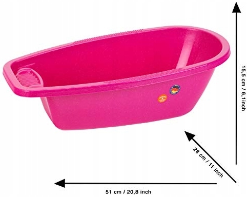 Ez a nagy méretű babafürdető kád egy praktikus és egyszerű kialakítású megoldás a mindennapi fürdetéshez, amely stabil és kényelmes használatot biztosít újszülöttek és kisbabák számára. A letisztult, kiegészítők nélküli forma könnyű tisztítást és gyors használatot tesz lehetővé, miközben elegendő helyet biztosít a baba biztonságos fürdetéséhez. Méret: 51 x 28 x 15,5 cm, amely kompakt, mégis kényelmes fürdetést biztosít kisebb helyeken is. Anyag: strapabíró műanyag, amely ellenáll a víznek és a mindennapi használatnak, könnyű és könnyen mozgatható. Korosztály: újszülött kortól ajánlott, ideális csecsemők és kisbabák számára mindennapi használatra.