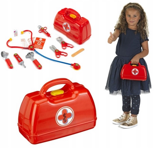 Ez a Theo Klein 4457 orvosi szerepjáték táska egy valósághű, gyerekeknek készült doktoros játékszett, amely lehetővé teszi, hogy a kicsik igazi kis orvosként vizsgálják meg plüssállataikat vagy babáikat, miközben sztetoszkóppal, fecskendővel, hőmérővel és egyéb kiegészítőkkel játszanak, így fejlődik a képzelőerejük, az empátiájuk és a finommotorikájuk. Méret: 27 x 9,5 x 23 cm, praktikus, hordozható bőrönd kialakítással, amely könnyen nyitható és zárható, így ideális otthoni és utazós játékhoz is. Anyag: strapabíró, gyermekbarát műanyag, lekerekített élekkel a biztonságos használat érdekében, részletgazdag kivitelben. Korosztály: 3 éves kortól ajánlott, tökéletes szerepjátékhoz, és játékosan segít oldani az orvosi vizsgálatokkal kapcsolatos félelmeket is.