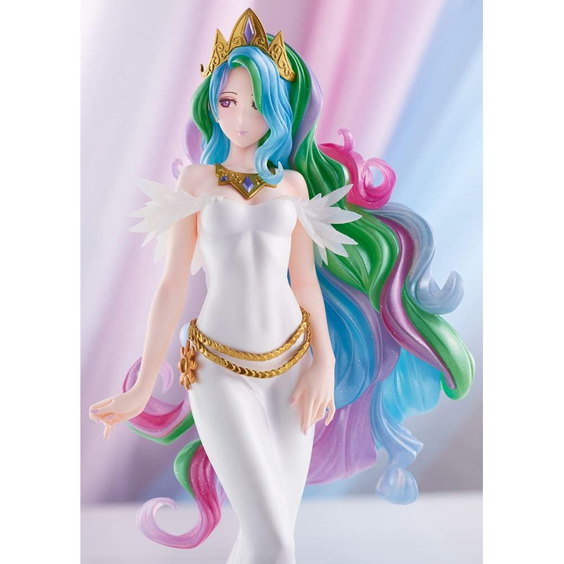 A Bishoujo sorozatban Princess Celestia egy elegáns, gyűjtői kivitelű szoborként jelenik meg. A figura 1:7 méretarányú, kb. 23,5 cm magas, szépen kidolgozott részletekkel és igényes festéssel, stabil talpon áll, így vitrinben is kifejezetten mutatós. A dizájn Shunya Yamashita illusztrációja alapján készült, a csomagolás pedig gyűjtőbarát, ablakos doboz.