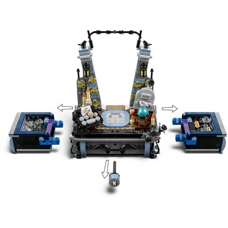 Rejtélyek és zűrzavar várja a 10+ éves gyerekeket a Wednesday Addams figura (76780) szettel! Ez a LEGO Wednesday szett tartalmaz egy gyűjthető, beállítható modellt, amelynek mozgatható feje, karja és lábfeje van, továbbá 2 arc és 2 öltözék tartozik hozzá, tehát a figurát újra lehet építeni. A szett része a hű társ, Izé, egy állvány fekete, játék dáliákkal és 2 titkos rejtekhely, ahol kincseket tárolhatsz, például a Rave�N Dance ruhát vagy az iskolai egyenruhát. A Nevermore Akadémia kapuja is a szett része, valamint olyan Wednesday kiegészítőkkel is találkozhatsz, mint az írógép, Nero sírja, a kristálygömb és még sok más. Fedezd fel a többi (külön kapható) LEGO Wednesday Addams készletet is, hogy még több játéklehetőség legyen! A modell remek ajándékötlet lehet a gyerekek számára. Az építési útmutató digitális változatát a LEGO Builder appban találod. A kiállítási alaplap hátulján van egy QR-kód-matrica is, amelyet le lehet olvasni, hogy a rajongók gyorsan hozzáférhessenek az építési útmutatóhoz, ha át akarják