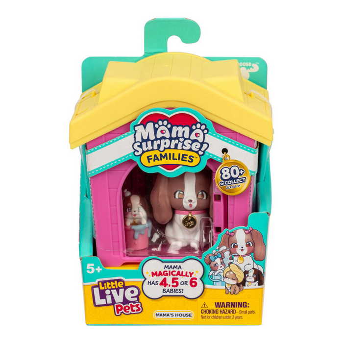 Indítsd el családodat a Little Live Pets Mama Surprise Families Mama\u0027s House Pack segítségével. Mama varázslatos módon 4, 5 vagy 6 babával rendelkezik! Hányat fogsz találni? Gondoskodj Mamáról, majd helyezd el a házban, csukd be az ajtót, és nyisd ki, hogy megmutasd a babát! Ismételd meg, és varázslatos módon mutasd meg a 4, 5 vagy 6 babát!