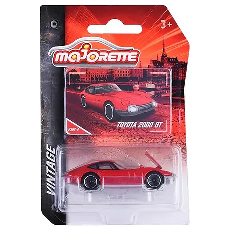 A Toyota 2000 GT kisautó a Majorette Vintage sorozat egyik legelegánsabb és legikonikusabb darabja, amely a klasszikus japán sportautók világát idézi meg. A piros fényezés különösen jól áll ennek a hosszú orrú, alacsony építésű kupénak, ezért gyűjtőknek és autórajongóknak is remek választás lehet.
