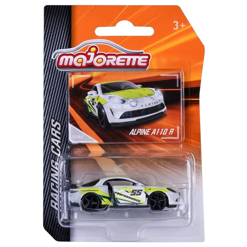 Az Alpine A110 R kisautó a Majorette Racing Cars sorozat egyik legizgalmasabb darabja, amely a könnyű és pályára hangolt francia sportautók világát idézi meg. Az 1:64 méretarányú modell kb. 7,5 cm hosszú, gyűjtői kártyával érkezik, és a rugózás, a szabadon futó kerekek, valamint a nyitható elem miatt játékhoz is nagyon jó. A fehér-sárga színkombináció kifejezetten látványos, ezért a modell a polcon is könnyen kitűnik. Jó választás lehet azoknak, akik a különlegesebb európai sportautókat kedvelik.