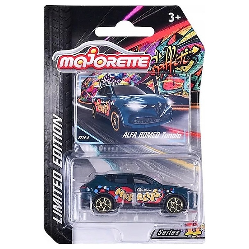 Az Alfa Romeo Tonale kisautó a Majorette Limited Edition Series 11 sorozat modern és látványos darabja, amely a márka SUV vonalát jeleníti meg egyedi, gyűjtőbarát formában. A street art ihlette kivitel és a mellékelt gyűjtői kártya még különlegesebbé teszi ezt az 1:64 méretarányú modellt, így ajándéknak és gyűjteménybe is jó választás lehet.