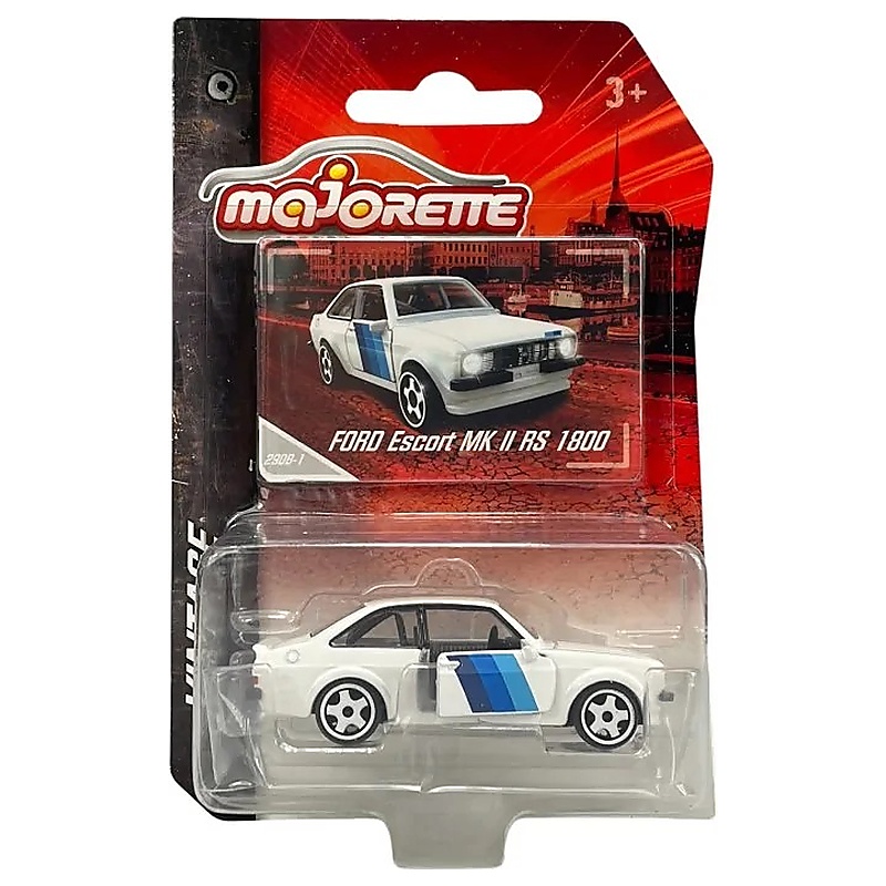 A Ford Escort MK II RS 1800 kisautó a Majorette Vintage sorozat egyik igazán sportos darabja, amely a klasszikus raliautók hangulatát hozza el kis méretben. A fehér fényezés jól illik a típus versenysportos karakteréhez, ezért ez a modell gyűjtőknek és autórajongóknak is különösen jó választás lehet.
