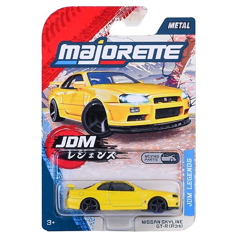 A Nissan Skyline G-TR R34 kisautó a JDM Legends sorozat egyik igazán látványos darabja, amely remek választás lehet a japán sportautók rajongóinak. Az 1:64 méretarányú Majorette modell részletgazdag kidolgozással, fém karosszériával, szabadon futó kerekekkel és a szériára jellemző mozgó alkatrészekkel készül, ezért játékhoz és gyűjtéshez is kiváló. A sárga fényezés még feltűnőbbé teszi ezt az ikonikus modellt a polcon vagy a pályán.