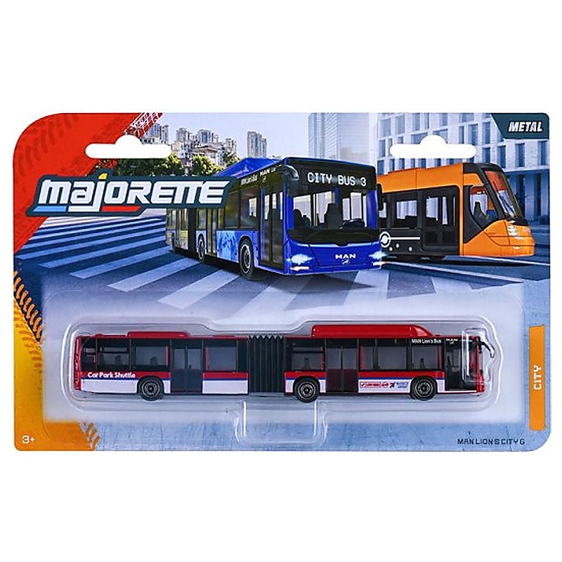 A MAN Lions City G Car Park Shuttle kisautó a Majorette City Bus sorozat egyik különösen hangulatos darabja, amely a reptéri vagy parkolói transzferbuszok világát hozza el játékformában. A hivatalosan licencelt modell fém karosszériával, szabadon futó kerekekkel és részletgazdag nyomtatással készül, így jól mutat gyűjteményben is. A piros Car Park Shuttle kivitel könnyen felismerhető, ezért a városi járművek kedvelőinek különösen jó választás lehet.