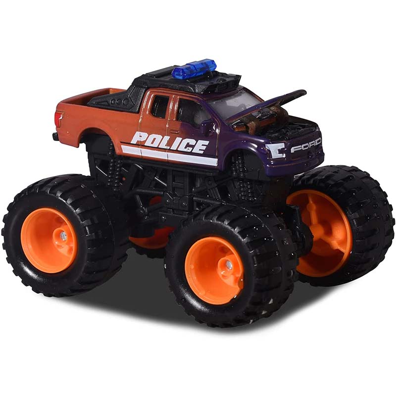 Tűnj ki a tömegből ezzel a színváltós Ford F-150 Raptor Police játékautóval és éld át a nem mindennapi játékautók vezetését! Nyisd fel a motorháztetőt, ellenőrizd le, hogy minden rendben van-e a motorral, aztán ülj be gyorsan az ülésre és irány a rablók után! Hatalmas, gumiból készült kerekeivel jól meg tud tapadni az utakon, ezért biztos nem fogsz megcsúszni, amikor üldözöd a rablókat a legmeredekebb hegyekben vagy a csúszós, tengerparti utakon. Aztán el ne felejtsd bevinni a bűnözőket a rendőrőrsre a száguldozás után! Egy Monster Rockerz szériás, fém rendőrautó vár minden autóimádó, háromévesnél idősebb fiúra.
