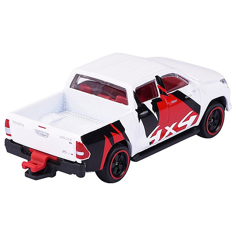 A Toyota Hilux Revo kisautó különleges darab a Racing Cars sorozatban, mert nem klasszikus sportkupét, hanem egy erős és sokoldalú pickup modellt jelenít meg. Az 1:64 méretarányú Majorette modell kb. 7,5 cm hosszú, gyűjtői kártyával érkezik, és a szabadon futó kerekek, rugózás, valamint a nyitható elem miatt játékhoz is remek választás. A fehér szín tiszta, versenyhangulatú megjelenést ad a modellnek, ezért a többi autó között is könnyen kitűnik. Jó választás lehet azoknak is, akik a terepesebb vagy munkára fejlesztett járműveket kedvelik.