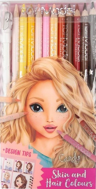 A Top Model Színes ceruza - bőr és hajszínek készlet 12 gondosan válogatott árnyalatot tartalmaz, amelyek ideálisak természetes hatású bőr- és hajszínezéshez. A csillogó, ezüstös megjelenésű doboz stílusos és praktikus választás minden kreatív alkotó számára. A ceruzák élénk pigmentáltságuknak köszönhetően részletgazdag, finom átmenetek kialakítását teszik lehetővé, így tökéletesek divattervek és portrék kidolgozásához.