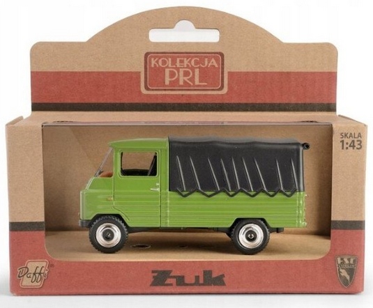 A Daffi Zuk K-549 1:43 méretarányú fém játékautó modell egy részletgazdag, fém és műanyag elemekből készült teherautó-replika, amely a klasszikus FSC Zuk lengyel haszongépjárművet idézi meg zöld-fekete színben. A modell gyűjthető darabként és játékhoz is alkalmas, mérete kb. 1:43 arányban a valós járműhöz képest, és 3 éves kortól ajánlott. Európai játékbiztonsági szabványoknak megfelel és ideális gyűjtőknek vagy autómodellek kedvelőinek.