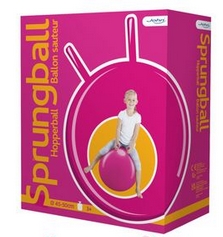 Ez a gyermekek számára készült ugrálólabda körülbelül 45-50 centiméter átmérőjű, így kisgyermekek számára ideális beltéri és kültéri játék. Erős, rugalmas műanyagból készült, a tetején két fogantyú található, amelyek segítik a biztonságos tartást és az egyensúly gyakorlását. Könnyen felfújható, súlya kb. 550 gramm, 3-8 éves gyerekeknek ajánlott, játék közben fejleszti a koordinációt és az egyensúlyérzéket.
