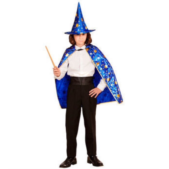 Ez a varázsló jelmez szett klasszikus köpenyből és kalapból áll, amely varázsló megjelenést kölcsönöz a gyermeknek. Ideális választás farsangi bulikra, szerepjátékokra vagy bármilyen beöltözős eseményre, amikor a viselő egy mágikus világ hősének szeretne álcázni magát. A szett egyszerű, mégis látványos megjelenést biztosít.