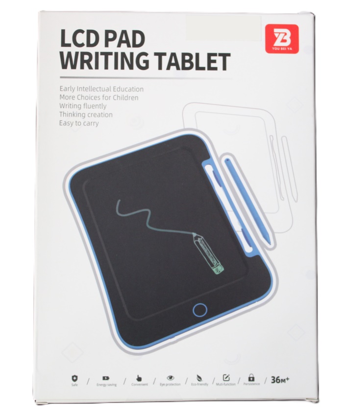 Tablet formájú LCD rajztábla, amely egyszerű és praktikus megoldást kínál a rajzoláshoz, jegyzeteléshez és kreatív játékhoz.A kijelző mérete kb. 22x16 cm, amely kényelmes rajzfelületet biztosít gyerekeknek és felnőtteknek egyaránt. A készülék 1 db 3V CR2016 gombelemmel működik, amely hosszú üzemidőt biztosít, és könnyen cserélhető. Egyetlen gombnyomással törölhető a teljes felület, így újra és újra használható papír nélkül, környezetbarát módon. Könnyű, vékony kialakításának köszönhetően egyszerűen hordozható, a tablet formátum pedig kényelmes fogást és modern megjelenést biztosít.