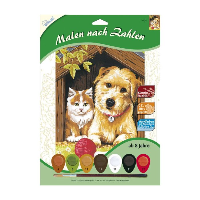 A szettben mindent megtalálsz ami a kép megalkotásához szükséges. A festéket nem kell hígítani a tökéletes fedés végett. Minden használat után az ecsetet mosd ki langyos mosószeres vízzel.