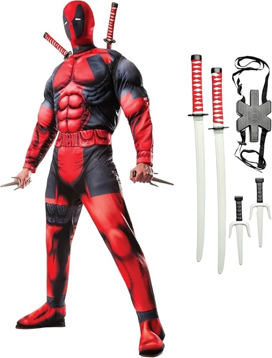 Deadpool Deluxe jelmez felnőtteknek - hivatalos Marvel-licencű felnőtt Deadpool jelmez. A szett izmos hatású jumpsuitot (egyrészes ruhát) és a jellegzetes maszkot tartalmazza, amely Deadpool karakter klasszikus piros-fekete kinézetét adja vissza. Alkalmas Halloweenre, farsangi bulikra és jelmezes rendezvényekre, kényelmes, könnyű anyagból készült és a jelmez szerepjátékhoz vagy tematikus eseményekhez ideális választás