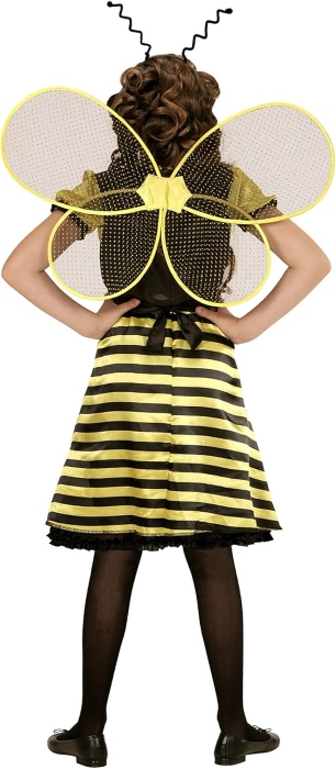 A Widmann gyerek jelmez egy sárga, rovar témájú kosztüm, amely poliészter anyagból készült és kisgyermekek számára készült karneválra vagy farsangi bulikra. A készletben a jelmez szerepel méret szerint (kb. 104 cm, 2-3 éves korosztálynak), és a vidám, élénk színű ruha könnyen felvehető szerepjátékhoz vagy jelmezviseléshez.
