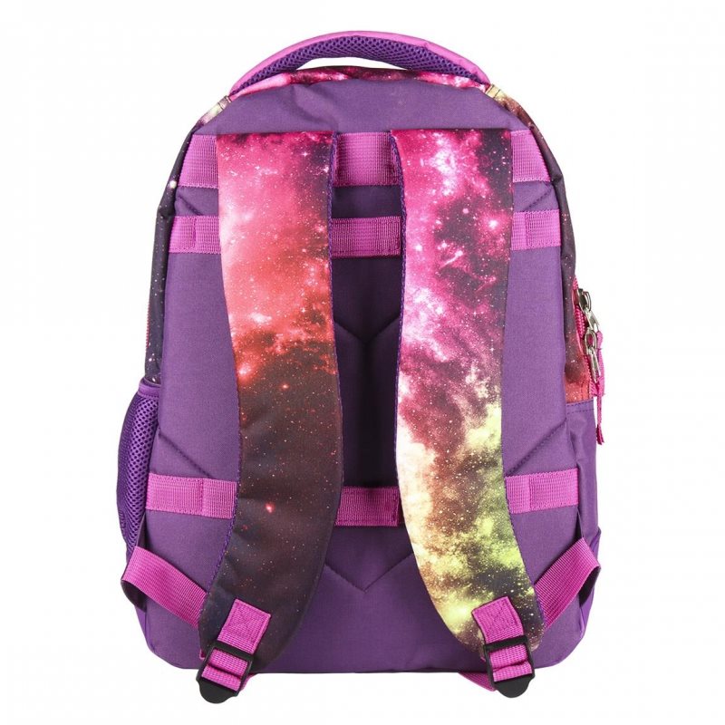 A Nebulous Stars Petulia iskolatáska 48 � 40 cm-es méretben praktikus és stílusos választás. Rózsaszín-lila galaxisos mintájával vidám megjelenést biztosít, elég tágas a tankönyvek, füzetek és egyéb iskolai kellékek tárolásához.