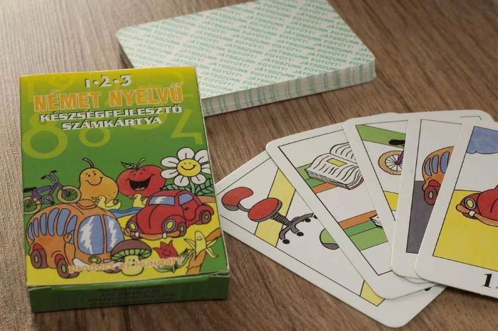 Ez az német nyelvű számkártya, segít elsajátítani az angol nyelv alapjait, és hogy ne csak beszélni tudjunk hanem számolni is. Klasszikus párkereső kártyajáték módszerével vezet be az angol számok világába. Hiszen milyen jó dolog, érteni a szomszéd ország népeinek a nyelvét igaz? Ez a kártyajáték betekintést, és ismereteket ad nekünk angol nyelven. Legyen játékos a tanulás!