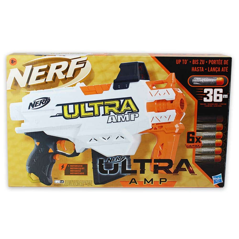 Töltsd tele a tárat, célozz, és tűz! Ezzel a Nerf Ultra AMP játékfegyverrel biztos eltalálod az ellenséget akár 36 méterről is. De vigyázz, nehogy téged lőjenek le. Töltsd újra a tárat a habszivacs töltényekkel és indulhat újra a párbaj, de szigorúan csak 8 évesnél idősebb fiúknak és lányoknak. A készlet tartalma: 1 db játékfegyver, 6 db szivacsból készült töltény. A játékhoz 6 db 15V-os AA elem szükséges, amelyet a készlet nem tartalmaz.