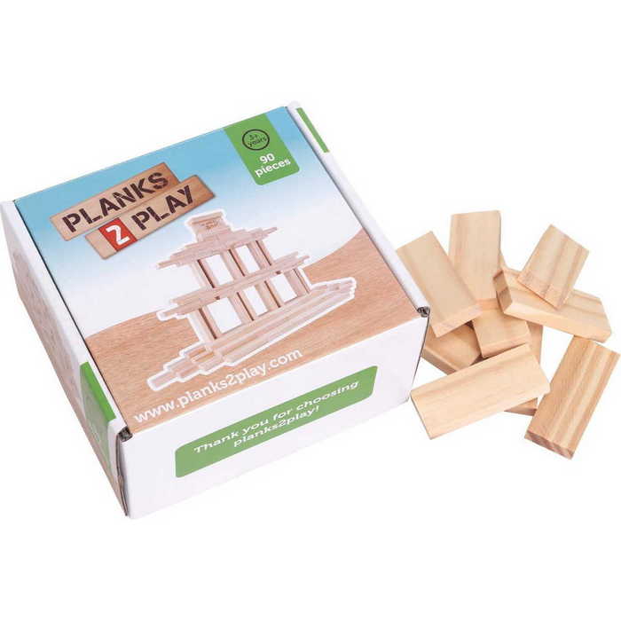 Planks2Play doboz 90 darab kis fa deszkával, amelyek méretei pontosan megegyeznek. A Planks2Play deszkák külön-külön, tökéletes egyensúlyban rakódnak egymásra, rögzítés nélkül! A fa deszkák méretei: 5,9 x 2,4 x 0,8 centiméter. Egy gyönyörű, kreatív és tartós anyagból készült építőjáték. Mindenki a saját fejlődési szintjének és inspirációjának megfelelően alakíthatja ki saját fantáziavilágát. Az egyszerű deszkák egymásra rakásától a bonyolult, méteres magasságú szimmetrikus konstrukciókig vagy híres építmények modelljeiig!