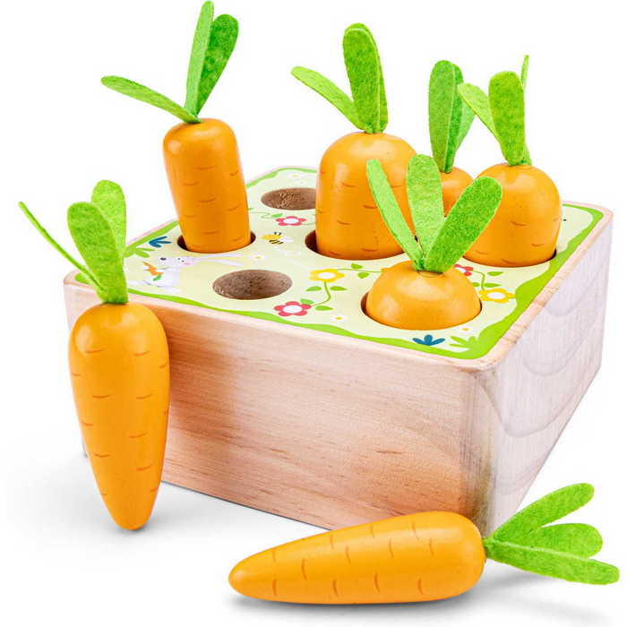 Fedezze fel a kert csodáit és szedje be a répát ezzel a vidám fa répás játékkal a New Classic Toys-tól, amely órákon át tartó szórakozást garantál. Miután az összes répát betakarították, kezdődik az igazi kihívás, amelynek során a gyerekeknek meg kell találniuk a megfelelő répát a megfelelő lyukhoz! Ez a válogató játék segít a kicsiknek fejleszteni a kéz-szem koordinációjukat és problémamegoldó képességüket játék közben. Ez egy szórakoztató módja annak, hogy megtanulják a válogatást és a különböző méretek felismerését, miközben kihúzzák a gyökereket a játékból, és megpróbálják visszatenni őket. Ideális arra, hogy a gyerekek bizonyos készségeket fejlesszenek anélkül, hogy észrevennék.