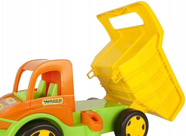A Wader Gigant Farmer traktor tolólappal egy nagy méretű, strapabíró műanyagból készült traktor játék, amely tolólappal és részletes kialakítással rendelkezik, így ideális kültéri játékhoz, homokozóba vagy udvarra. A traktor könnyen guruló kerekekkel és stabil felépítéssel készült, ami szórakoztató, kreatív szerepjátékot biztosít gyermekek számára mezőgazdasági és építkezős témákban.