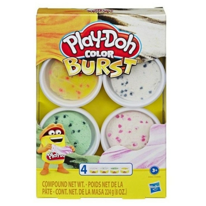 | Megnevezés | Play-Doh Color Burst gyurma 4 x 56 gramm zöld, narancs, barna, rózsaszín (E8061) |