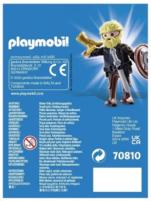 Playmobil PLAYMO FRIENDS 70810 Viking harcos egy mozgatható Playmobil figura kiegészítőkkel, amely egy viking harcost, sisakot, pajzsot és fegyvereket tartalmaz. A figura tartós műanyagból készült, könnyen fogható és játszható, így alkalmas önálló szerepjátékra vagy más Playmobil készletekkel való kombinálásra. A szett ösztönzi a kreatív játékot és képzeletbeli történetek alkotását, és 4 éves kortól ajánlott.