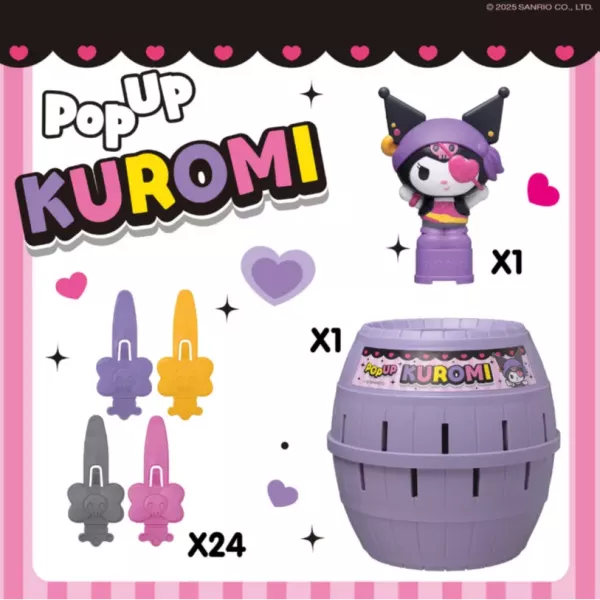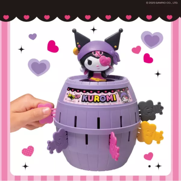 A játékosok sorban csúsztatják a kis csontváz kulcsokat a hordóba. Ha semmi sem történik, biztonságban vannak. Azonban a rossz hely kiválasztása esetén Kuromi kiugrik a hordóból, és az a játékos kiesik. Senki sem tudja, melyik nyílás lesz a következő, amelyből Kuromi kiugrik, hiszen minden újraindításnál változik! A Pop Up Kuromi tökéletes ajándék minden Hello Kitty rajongónak, különösen azoknak, akik szeretik Kuromi mókás csínytevéseit. Egyszerű szabályaival és vidám hangulatával ez a játék minden korosztálynak remek szórakozást nyújt. Ideális 2-4 játékos vagy csapat számára, 4 éves kortól ajánlott.