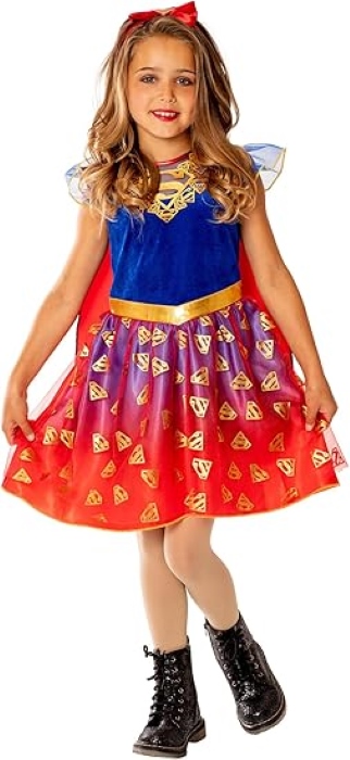 Teljes Supergirl gyerekjelmez, amely klasszikus szuperhős-stílusú megjelenést ad farsangi bulikra, tematikus eseményekre vagy szerepjátékhoz. A szett egy mintás ruhát piros köpeny-elemmel, övvel és fejpánttal ad, így a gyermek az elejétől a végéig hiteles jelmezben lehet. Az elemek könnyűek és egyszerűen fel- és levehetők, valamint kényelmes viseletet biztosítanak mozgás közben is. A részletgazdag kidolgozás és élénk színek vidám, ünnepi megjelenést kölcsönöznek a kicsinek�így ő lehet a jelmezbál, farsang vagy tematikus parti fénypontja.�