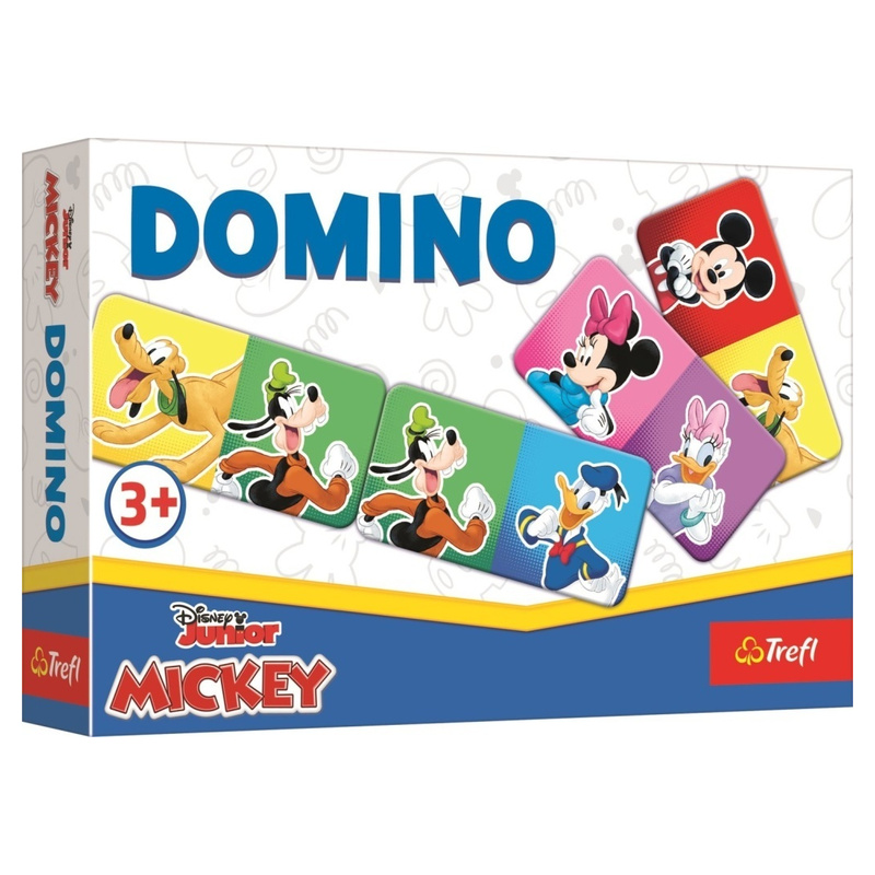 Képes dominó Mickey egér és barátai mintákkal. Azonos képeket kell összepárosítani, gyors, könnyen tanulható játék. 21 db kartonlap a dobozban, 3+ kortól.