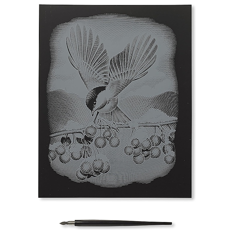 A halvány körvonalakkal előrajzolt sablont, a készletekben található eszköz használatával tehetjük teljessé. A képkarcolás technikája könnyen elsajátítható, hiszen minden szettben találhatunk egy próbalapot, amely segítségével kedvünkre gyakorolhatunk. Látványos szobadísz sőt, egy igazán kedves, saját kezűleg készített egyedi ajándék lehet, a fekete alapon készített ezüst karcolat.
