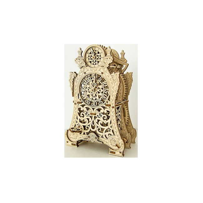 Ebben az órakészítő kalandban a fogaskerekek, ingák és kezek elegáns kombinációját fedezheted fel, mindezt gumimotor hajtja. Az órát kulccsal lehet feltekerni, akárcsak egy letűnt korszak óráját, tükrözve a régi idők esztétikáját és a technológia pontosságát.