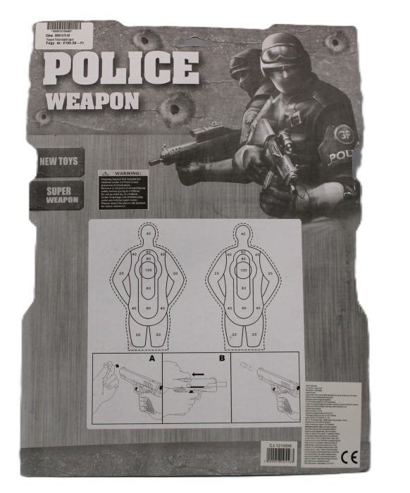 SWAT témájú játék fegyverkészlet, ideális kiegészítő rendőrös-kommandós szerepjátékokhoz és jelmezhez. Tartós, könnyű műanyagból készült elemek biztonságos és kényelmes használatot biztosítanak gyerekeknek (3 éves kortól ajánlott). A készlet tartalma: 2 pisztoly, 1 védőszemüveg, 1 jelvény, 4 célpont és 24 lőszer, így minden adott egy izgalmas játékhoz. A termék lapos csomagolásban érkezik, ami megkönnyíti a tárolást és bemutatást. Ideális választás akciódús szerepjátékhoz vagy SWAT témájú játékhoz.