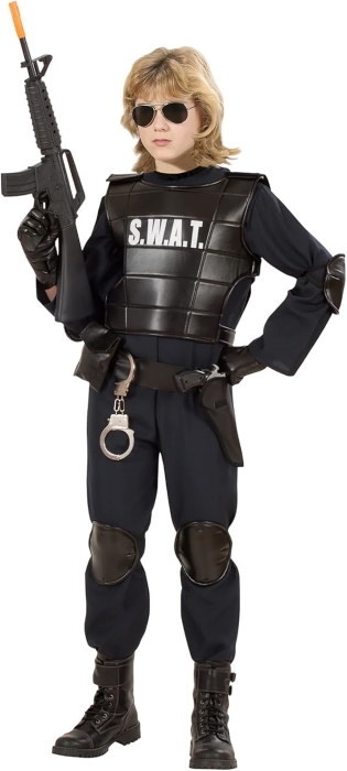Ez a SWAT kommandós jelmez gyermekeknek egy látványos ruha, amellyel a viselő egy különleges akcióegység tagjának tűnhet farsangi bulikon, szerepjátékokban vagy más beöltözős eseményeken. A csomag általában egy fekete felsőt és sapkát tartalmaz, amelyen jól látható a SWAT felirat, így egy vagány rendőr-szerű akcióhős megjelenést ad a gyermeknek. A jelmez nem tartalmaz játékfegyvert vagy más kiegészítőket, de könnyen kombinálható egyéb játékokkal is.