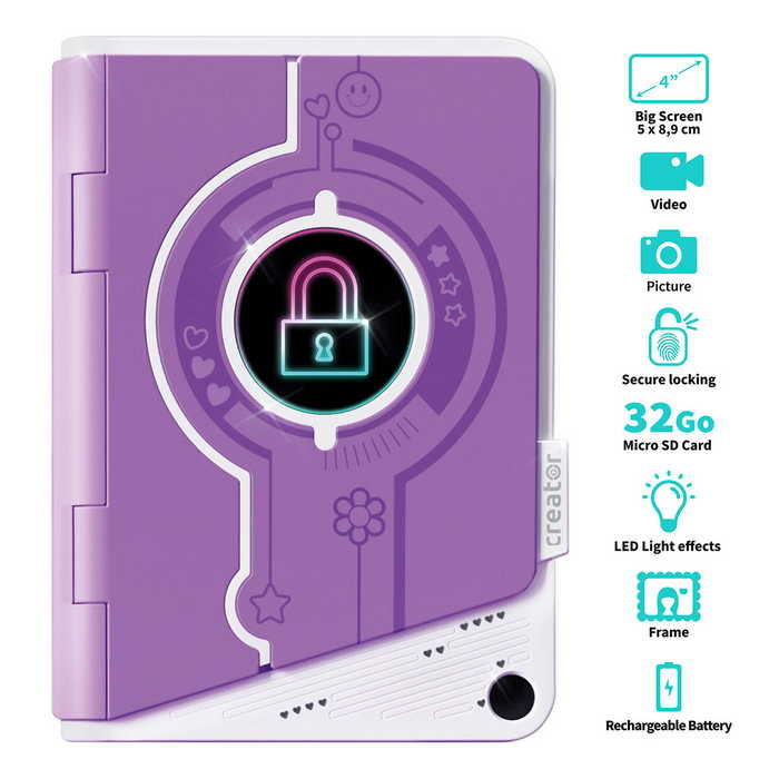 Az idők változnak. Görbe betűk a naplóban? Ez bizony már a múlté! Sokkal autentikusabb, ha az élményeidet videós formában örökíted meg. Az emlékek így sokkal személyesebbek lesznek, ráadásul saját magad változásait is visszanézheted. Megérkezett a Canal Toys Secret Creator titkos videónapló, ami kialakításban olyan, mint egy klasszikus füzet, azonban gondolataidat, rajzaidat és titkos üzeneteidet videó formában örökíthetsz meg, amit ráadásul számos kiegészítő funkcióval varázsolhatsz különlegessé.