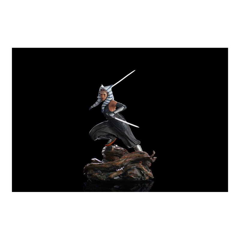 The orange-skinned warrior Togruta is a native of the planet Shili and carrier of the Force. Silent and swift, like a hunting cat, she stealthily moves among the trunks and roots of the forest planet Corvus. Carrying two sabers in each hand, she follows her own ideals of justice and freedom, using all her Jedi training and her long experience in combat, always with the Force. In response to requests from fans and collectors, Iron Studios presents the Ahsoka Tano - The Mandalorian - BDS Art Scale 1/10 statue, just like the hit series on Disney+.