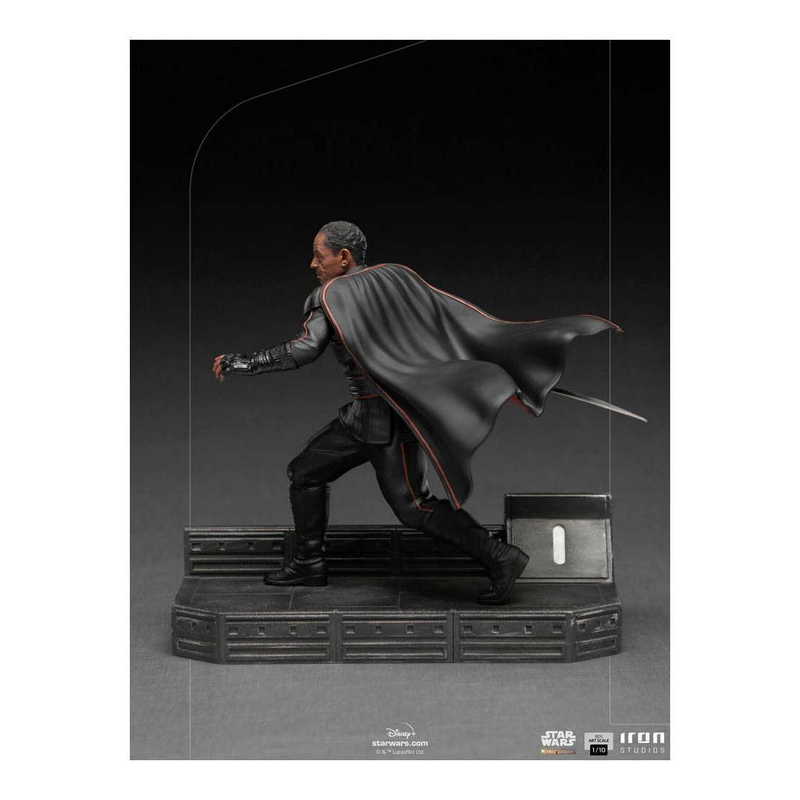 Officer Moff Gideon is an agent for the Imperial Security Bureau, the law enforcement and intelligence arm of the fallen Galactic Empire. Gideon stands at the base of the floor of his light cruiser and advances, wielding the legendary Shadow Saber, the only black lightsaber in the Star Wars canon. The black lightsaber was stolen long ago from the Jedi Temple of Coruscant by Clan Vizsla of Mandalorians and has become a symbol of the Mandalore. Anyone who wields it can claim the Mandalorian throne. In his black imperial uniform covered in a cape, with a blaster pistol on his hip, Iron Studios presents the feared Moff Gideon BDS Art Scale 1/10 - The Mandalorian - Iron Studios.