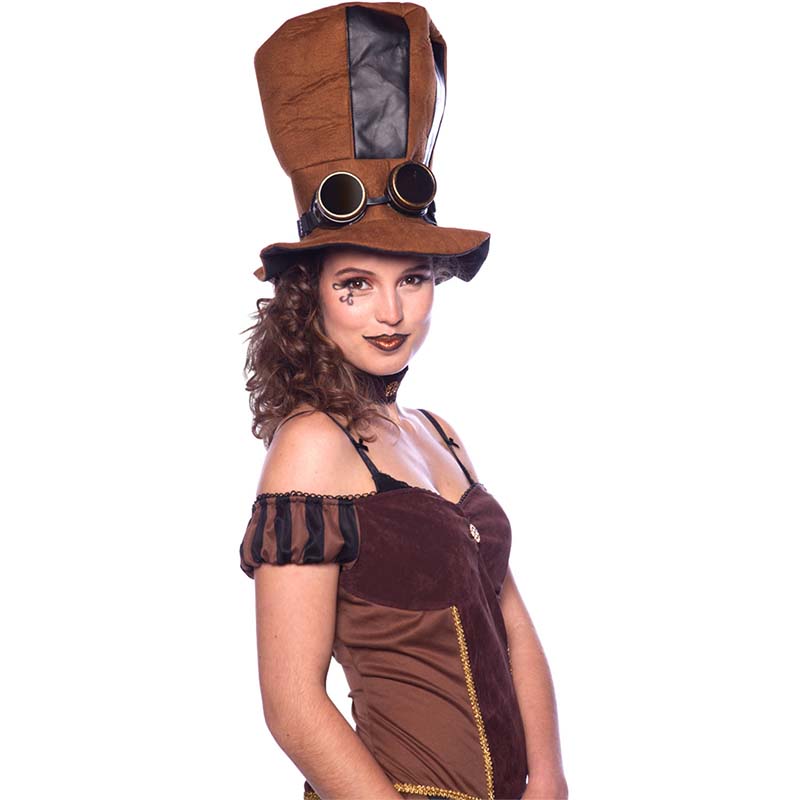 Imádod a steampunk stílust? Szeretnél idén te a farsangi jelmezverseny dobogóján állni? Akkor csapj le gyorsan erre a barna színű steampunkcilinderre és vidd el a fődíjat! Igazítsd meg a rajta lévő, szinte kötelező kiegészítőt, vagyis a szemüveget, vegyél fel egy barna és fogaskerekes ruhát és mutasd meg a jelmezverseny zsűrijének, milyen eredeti a jelmezed! Készíts egy hozzá illő sminket vagy szerezz egy sétapálcát, hogy igazán karakterhű legyél! A kép illusztráció, a 30 x 10,5 centiméteres cilinder nem tartalmaz minden kiegészítőt!
