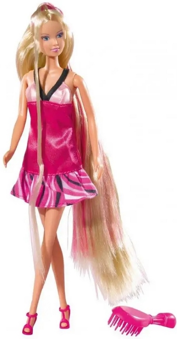 Ez a Steffi Love hosszú hajú baba egy klasszikus, kreatív szerepjátékra tervezett divatbaba, amely különösen a hajformázás iránt érdeklődő gyerekek számára nyújt izgalmas játékélményt, hiszen a baba extra hosszú, fésülhető hajjal érkezik, valamint többféle hajformázó kiegészítőt is tartalmaz, így a gyerekek saját frizurákat készíthetnek és fejleszthetik kézügyességüket és kreativitásukat. A baba mozgatható végtagokkal rendelkezik és divatos ruhában érkezik, így könnyen bevonható különféle történetekbe és mindennapi szerepjátékokba. Méret: kb. 29 cm magas (klasszikus divatbaba méretarány). Anyag: műanyag test, textil ruházattal és műanyag kiegészítőkkel. Korosztály: 3 éves kortól ajánlott, elsősorban divat- és hajformázás iránt érdeklődő gyerekek számára.