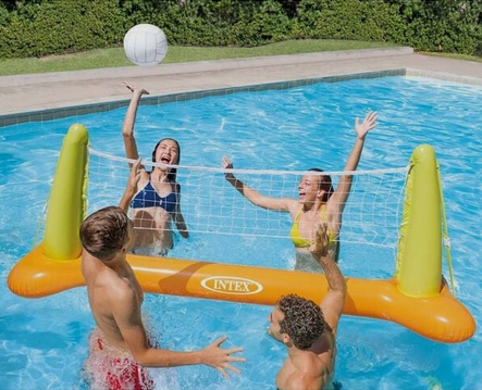 Ez az Intex felfújható medence röplabda szett aktív és szórakoztató nyári játékélményt nyújt, amely tökéletes választás családi vagy baráti vízi programokhoz, és garantáltan feldobja a medencében töltött időt. A 239x64x91 cm-es méret ideális játékteret biztosít, stabil kialakítása pedig lehetővé teszi a kényelmes és biztonságos használatot. Tartós, erős PVC (vinil) anyagból készült, amely jól ellenáll a vízi igénybevételnek, miközben a súlyozható rögzítő részek és oldalsó támaszok extra stabilitást adnak a hálónak. A szett tartalmaz egy felfújható labdát is, így azonnal használatra kész. Korosztály: 6 éves kortól ajánlott, ideális választás vidám, mozgásos vízi játékhoz.