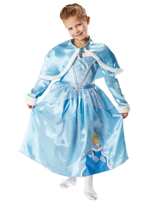 A Disney Princess Winter Cinderella Costume for Kids egy gyermek-méretű hercegnői jelmez, amely egy világoskék-fehér, közepes hosszúságú Disney-inspirált ruhát és hozzá illeszkedő köpenyt tartalmaz. A kosztüm mesebeli, "téli csoda" stílusú megjelenést biztosít jelmezbálokra, farsangi eseményekre vagy tematikus szerepjátékhoz.