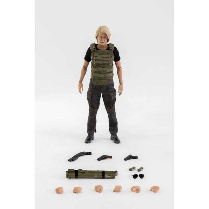A Terminátor: Dark Fate filmből érkezik ez a rendkívül részletes és teljesen artikulált figura. Kb. 14 cm magas, valódi szövetruhát visel, és tartozékokkal, valamint cserélhető alkatrészekkel érkezik.