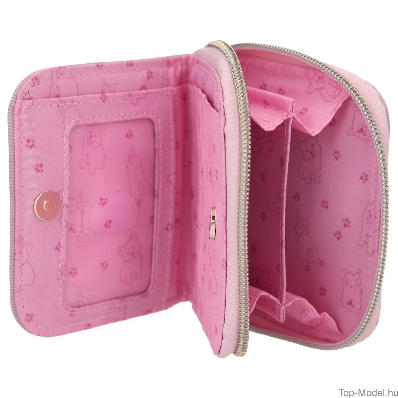 A Top Model Corgis pénztárca rózsaszín színvilágával és párizsi hangulatú mintájával igazán stílusos kiegészítő. Kompakt mérete praktikus aprópénz, bankjegyek és kártyák tárolására, miközben játékos és divatos megjelenést biztosít minden Corgis rajongónak.